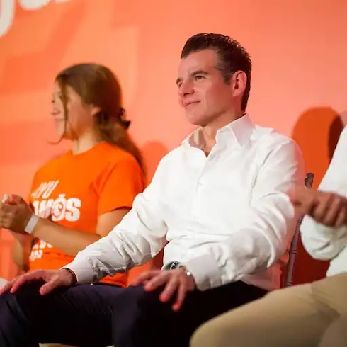 Al hacer la entrega del CBTIS 299 con la Presidenta de México, Claudia Sheinbaum, el Gobernador de Nuevo León, Samuel García Sepúlveda agradeció a la Mandataria federal por seguir impulsando la educación media superior en el Estado con carreras enfocadas a la alta tecnología y el futuro.