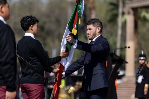 Al encabezar la Ceremonia Conmemorativa del Día de la Bandera, el Gobernador Samuel García Sepúlveda dijo que los retos que enfrenta el país exigen honrarla, fortaleciendo a Nuevo León con resultados que estén a la altura de su historia.