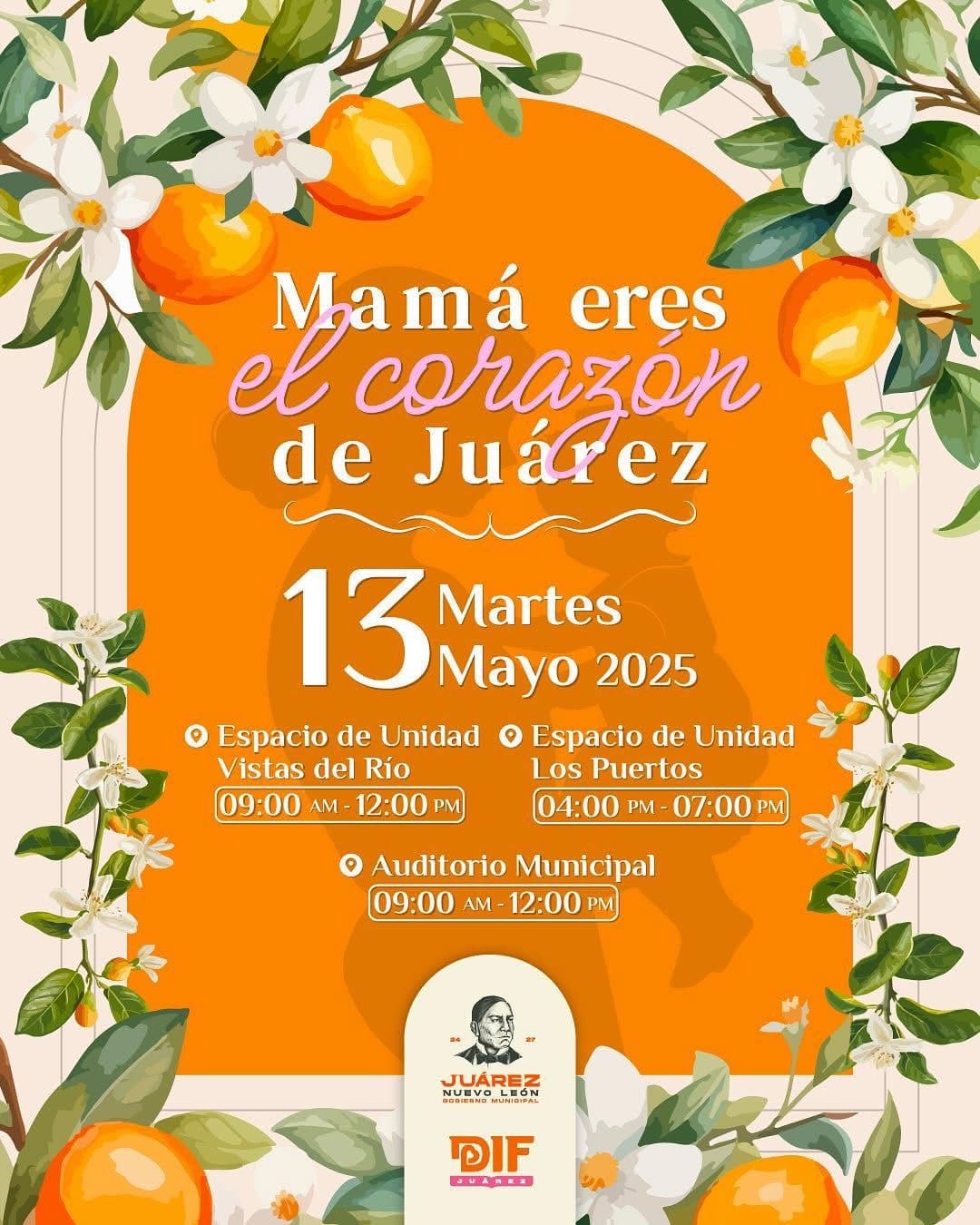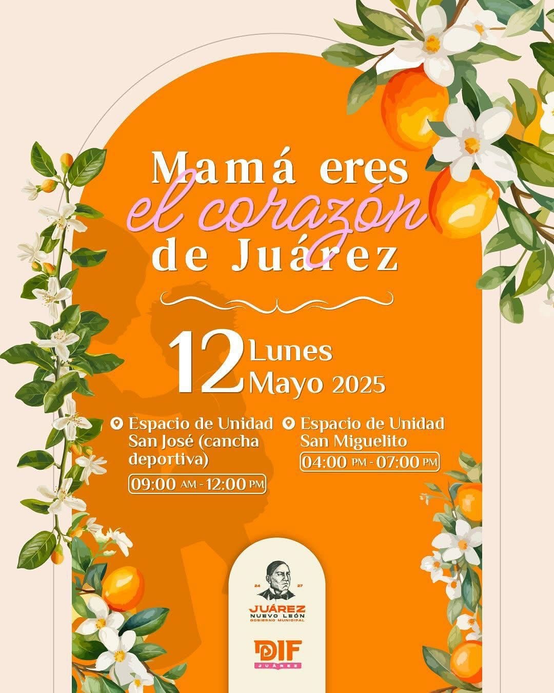 El Gobierno de Juárez extiende cordialmente la invitación a estas celebraciones a las madres juarenses en reconocimiento de su labor y dedicación al desarrollo de nuestra comunidad desde el núcleo familiar.
