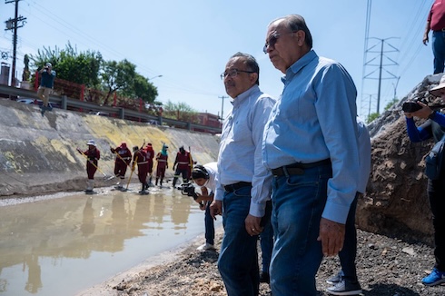 El Alcalde Andrés Mijes supervisó los trabajos que está realizando personal de la Secretaría de Servicios Públicos en el canal pluvial de la Avenida Las Torres, a la altura de la Colonia Topo Grande, labores que se extenderán a lo largo de 3 kilómetros.