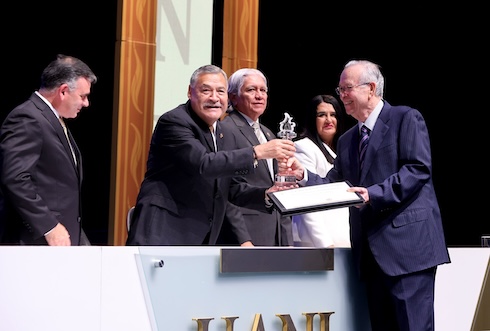 Como parte del acto protocolario, el ejecutivo universitario entregó a cada uno de los galardonados un diploma de reconocimiento y una estatuilla de cristal que emula la emblemática flama de la UANL.
