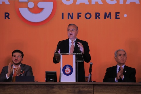 Héctor García dió lectura a su primer informe ante el Gobernador de Nuevo León, Samuel García, su esposa Mariana Rodríguez, el Secretario de Gobierno, Miguel Ángel Flores, el Fiscal de Nuevo León Javier Flores y otras autoridades que lo acompañaron durante este evento.