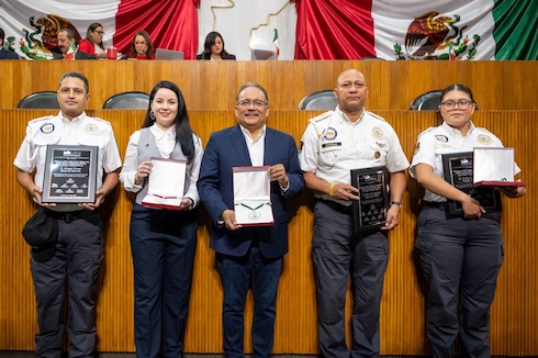 Los uniformados galardonados son Evelin Yamileth Mata Moreno, Angel Omar Pecina Ramos en tanto que Marco Antonio Zavala Solís, Secretario de Seguridad Ciudana recogió la distinción de Deyra Guadalupe Figueroa Flores, quien tiene una incapacidad por cuestiones propias del trabajo.