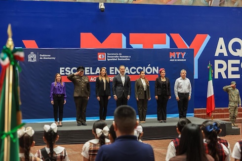 El Gobierno de Monterrey dotó este lunes de Banderas Mexicanas nuevas a 50 escuelas públicas de la ciudad.