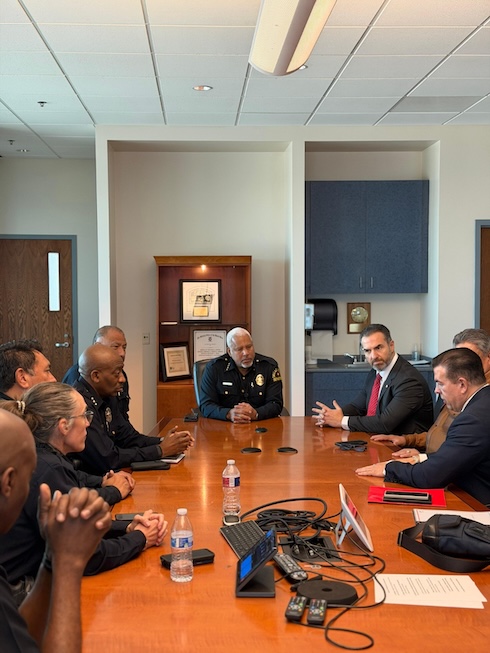 Para conocer las tareas de vigilancia policial urbana y seguridad comunitaria, el Alcalde Adrián de la Garza sostuvo una reunión privada con Daniel C. Comeaux, jefe del Departamento de Policía de Dallas.