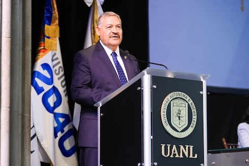 Ante autoridades y estudiantes universitarios, el Rector de la UANL destacó que este evento reafirma el compromiso humanista de la Máxima Casa de Estudios de Nuevo León con la sociedad.