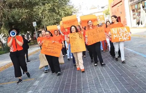 Encabezadas por Miriam Hinojosa Dieck, Presidenta Ejecutiva del IEMujeres, un grupo de mujeres caminó por la calle 5 de Mayo y Escobedo hacia la Explanada Cultural, en donde realizaron algunas dinámicas.