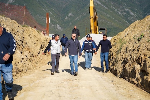 Como parte del recorrido, el Alcalde supervisó también el corredor Acueducto–Antiguo Camino a Villa de Santiago, donde se desarrolla la construcción y rehabilitación de 1,250 metros lineales de avenida con tres carriles por sentido. Este frente de obra, que incorpora banquetas, guarniciones, cruces peatonales y alumbrado, registra actualmente un avance del 55 por ciento.