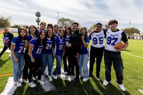 El evento incluyó la patada de arranque de futbol americano y una cascarita de soccer, donde el Gobernador sorprendió como mariscal de campo jugando futbol bandera con los alumnos y alumnas de los “Kiowas” y adjudicándose un touchdown, así como continuando su racha goleadora en su faceta como delantero.