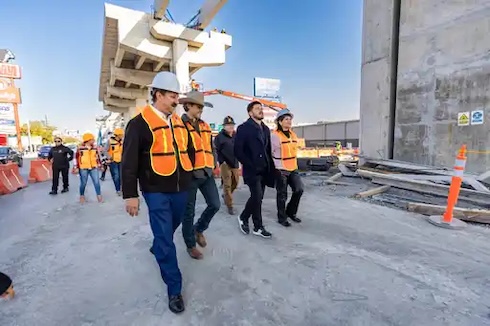 Durante el recorrido, organizado por la Secretaría de Movilidad y Planeación Urbana (SMPU), la comitiva inició en el cruce de Miguel Alemán y Bonifacio Salinas, donde se revisaron los avances generales de obra civil y electromecánica.