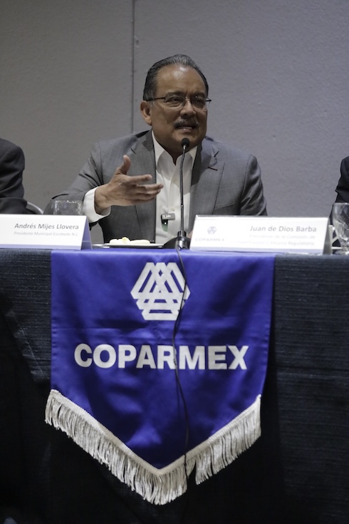 Ante la presencia de Oscar Campo, Director de Desarrollo Económico IMCO, Juan de Dios Barba, Presidente de la Comisión de Competitividad y Mejora Regulatoria, además de integrantes de la Presidencia y Consejeros de COPARMEX, el Edil explicó cómo el Municipio ha construido un modelo de gobierno que utiliza la digitalización como herramienta para cerrar espacios a prácticas como la corrupción y la extorsión.