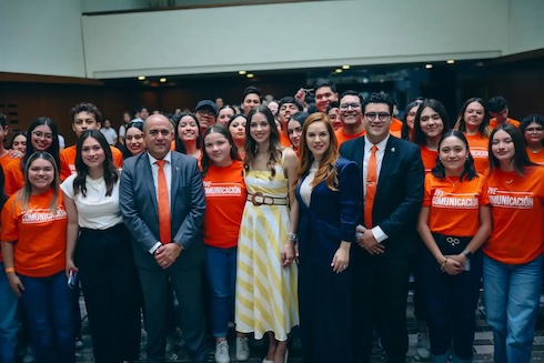 Ante funcionarios estatales, directivos de la UANL, directivos de medios de comunicación, personal docente, administrativo y alumnos de la FCC, Mariana Rodríguez exhortó a los estudiantes a mantenerse fieles a su esencia.