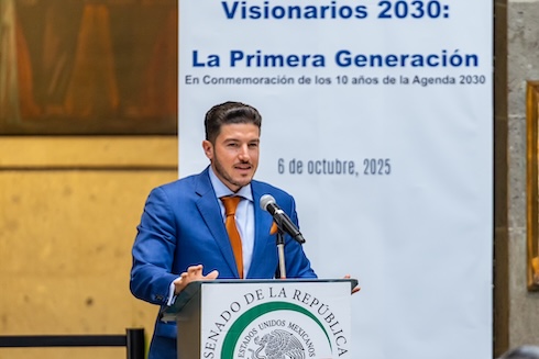 En representación del Gobierno de Nuevo León, el Gobernador Samuel García Sepúlveda y la Secretaria de Igualdad e Inclusión, Martha Herrera González, participaron en el evento Visionarios 2030: La Primera Generación, celebrado en el Senado de la República con motivo de los 10 años de la Agenda 2030 para el Desarrollo Sostenible.