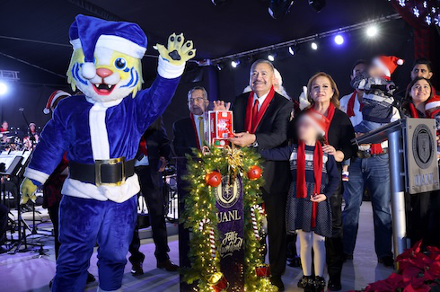 Con un mensaje de unión y paz, la Universidad Autónoma de Nuevo León realizó el tradicional encendido del pino navideño en presencia de la comunidad universitaria y sus familias.